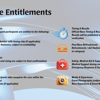 Your registration for the Endau-Rompin International Ultra Marathon (ERIUM) includes participation in 50km race, access to the official race course, and race-day support services. Participants will receive an event race bib, official race tee, hydration and refreshment stations along the route, medical support, a finisher shirt and a finisher medal upon successful completion of the race.